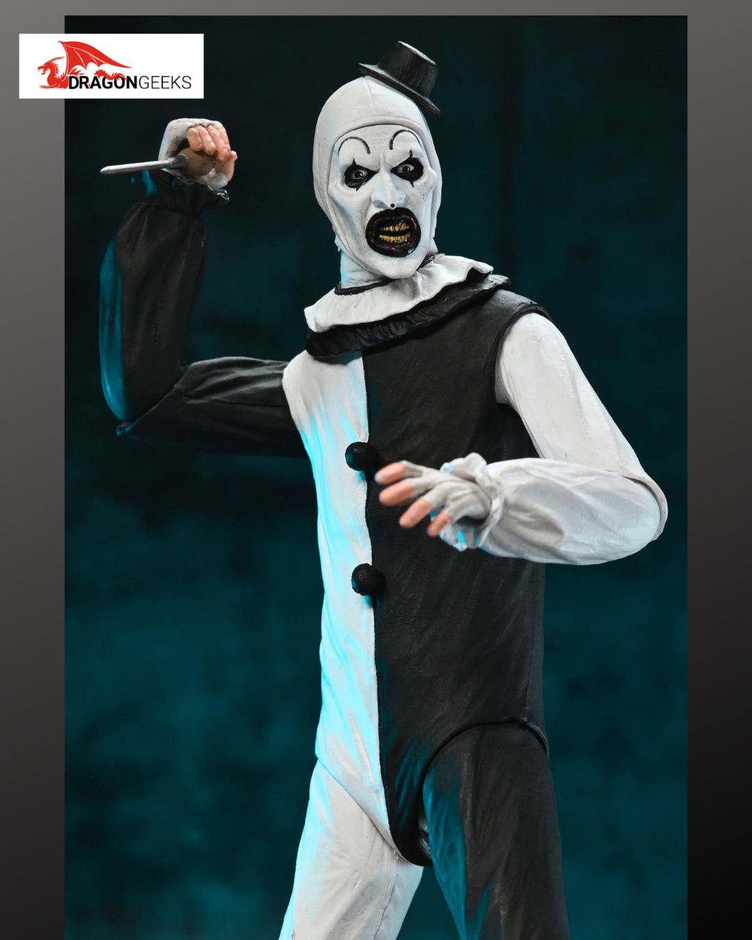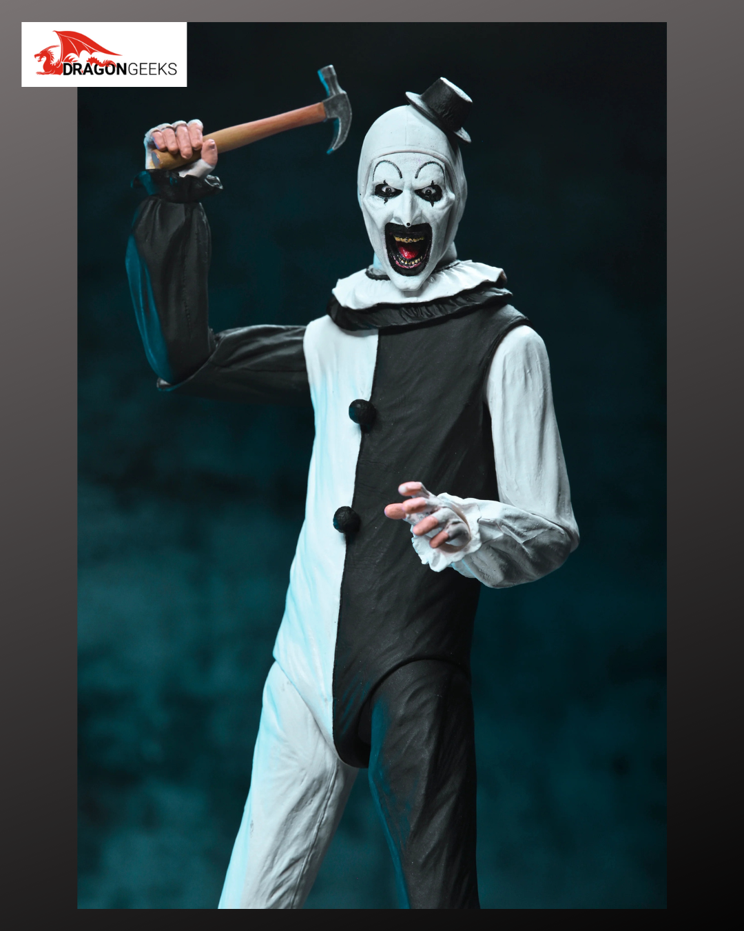 The iconic villain from Damien Leone’s Terrifier is getting NECA’s Ultimate treatment. Capturing every eerie detail of the silent slasher, this 7-inch scale articulated action figure includes interchangeable expressions and hands. Plus, an unsettling arsenal of weapons and accessories! Comes in collector-friendly window box packaging with opening front flap—perfect for your horror display.