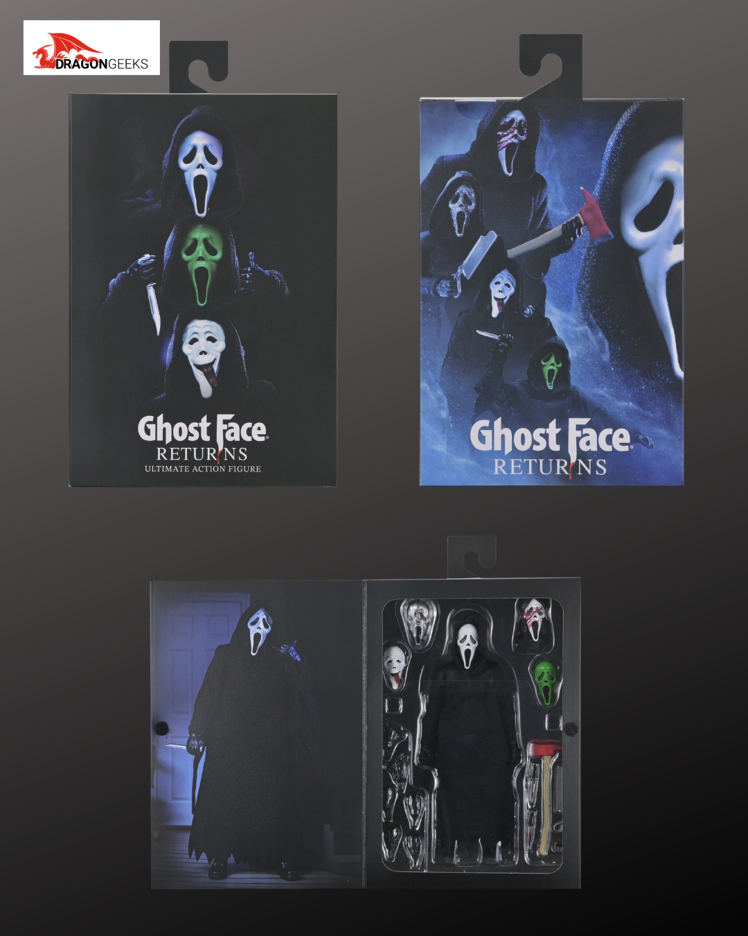 Ghost Face is back — and better than ever! NECA reimagines its original Ultimate Ghost Face with a fresh update featuring new looks, more weapons, and updated articulation. Based on the iconic Fun World® costume and masks, this figure brings the legendary slasher into a new era.